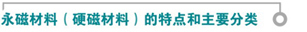 磁性材料主要分為永磁材料與軟磁材料。永磁材料又稱硬磁材料,磁體經過外加磁場以后能長期保留其強磁性,特點是矯頑力(Hc)高。一般其矯頑力Hc≥10A4/m。磁能積(BH)max大。軟材料是加磁場后即容易磁化,也容易退磁的磁性材料,特點是矯頑力小,一般其矯頑力Hc≤10A3/m。