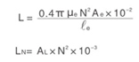 The inductance of a wound core at a given number of turns is calculated using the following formula![]() | L=0.4πμeN2Ae*10-2/le Ln=Al&N<2>*10-3L:電感量(μH)1H=103mH=106μH=109nH inductance(μH) Al:額定電感量(nH/N2)nominal Inductance(nH/N2) μe:有效磁芯截面積 effective cores section area(cm2) Ae:有效磁路長度 mean magnetic path length(cm) N:線圈數(shù): number of turns Ln:在N圈時的電感量(μH)Inductance at N turns(μH) |