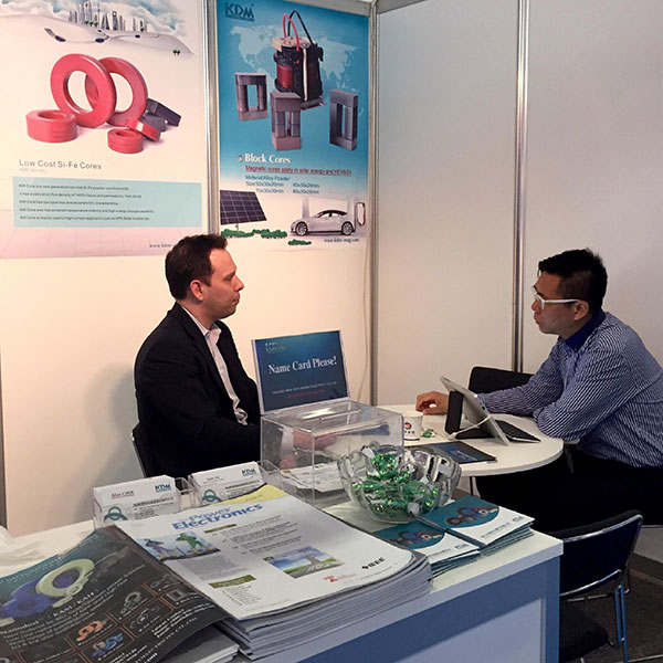 這是我司第一次參加柏林線圈展,我司參展代表駐香港辦技術(shù)銷售經(jīng)理Alan先生熱情而詳細(xì)地向前來(lái)展廳參觀的參展者介紹宣傳我司的納米金磁粉芯,超級(jí)鐵硅鋁磁粉芯,低成本硅鐵磁粉芯等產(chǎn)品。
