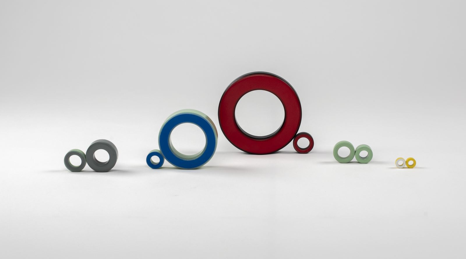 普通鐵粉芯是利用傳統(tǒng)生產(chǎn)工藝,是由Fe含量99%以上的純鐵粉末其經(jīng)表面經(jīng)絕緣包覆,然后采用有機(jī)粘合劑混合壓制而成的一種磁性材料,由于其材料沒(méi)有做高溫處理,故其使用溫度在-65C~+125C。磁導(dǎo)率從10μ~100μ,形狀有環(huán)型、E型、U型、R棒型等較為復(fù)雜的產(chǎn)品。由于鐵粉芯內(nèi)有天然的氣隙分布特性,被廣泛應(yīng)用于儲(chǔ)能電感器、調(diào)光抗流器、EMI噪音濾波器、DC輸出/輸入濾波器等,是磁粉芯中價(jià)格便宜的一種材料。